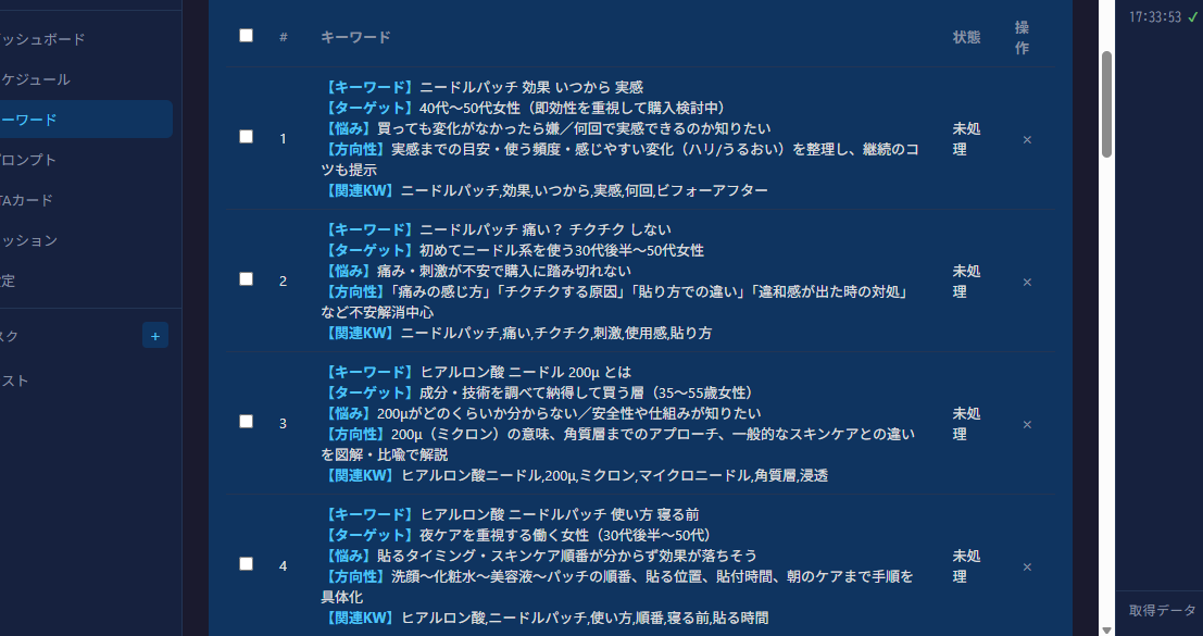本来1記事作成するのって1時間とか普通にかかりますが「わずか5秒」で走らせることが可能です。